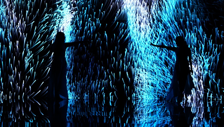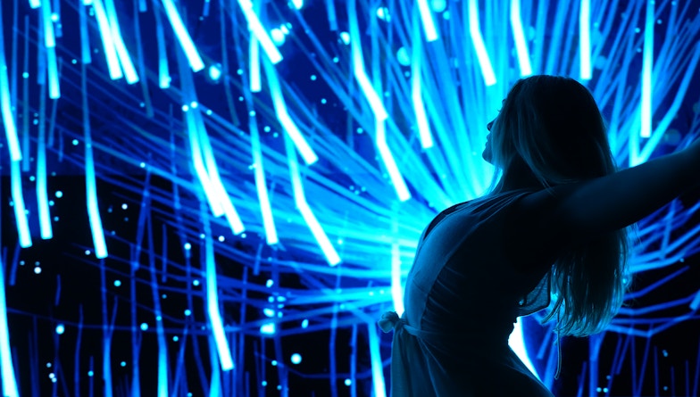 Lumin is a living installation inspired by nature, sourced by the audience. It is real time simulation of glowing worms in the dark caves. It tracks hand positions of the visitors and transform them to light and force fields in the virtual world. This helps to create an invisible connection to allow the audience to be part of artwork. When someone interact with they can observe the physical life like behaviours of bioluminescence creatures.